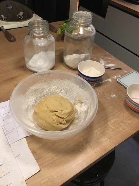 Le week-end de confection des bredeles est toujours le même : il se déroule lors du dernier week-end de novembre. J’envoie un message à mes amis pour les avertir, et si certains sont disponibles et partants, ils viennent prêter main-forte. C’est toujours un moment convivial ! L’ordre de confection est organisé avec soin et ne varie pas beaucoup d’une année à l’autre. Ce « système » est rodé depuis plusieurs années, basé sur l’alternance des temps de levée des pâtes et de cuisson des gâteaux pour optimiser le temps.