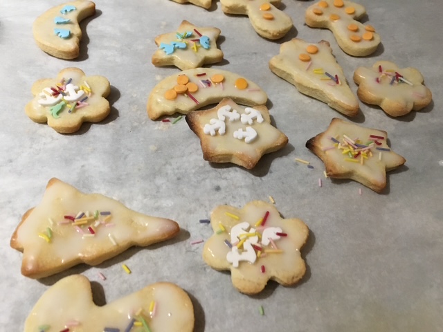Chaque année, je travaille les recettes des croissants à la vanille et des sablés à l’orange. J’essaie de nouvelles combinaisons, ajuste les ingrédients, ou modifie les temps de cuisson. Mon objectif ? Améliorer le goût et la texture, car je ne suis jamais entièrement satisfaite de ces deux-là. Certains gâteaux, comme les étoiles glacées, sont même abandonnés, car trop durs. Et puis, je préfère éviter une réclamation suite à une dent cassée !